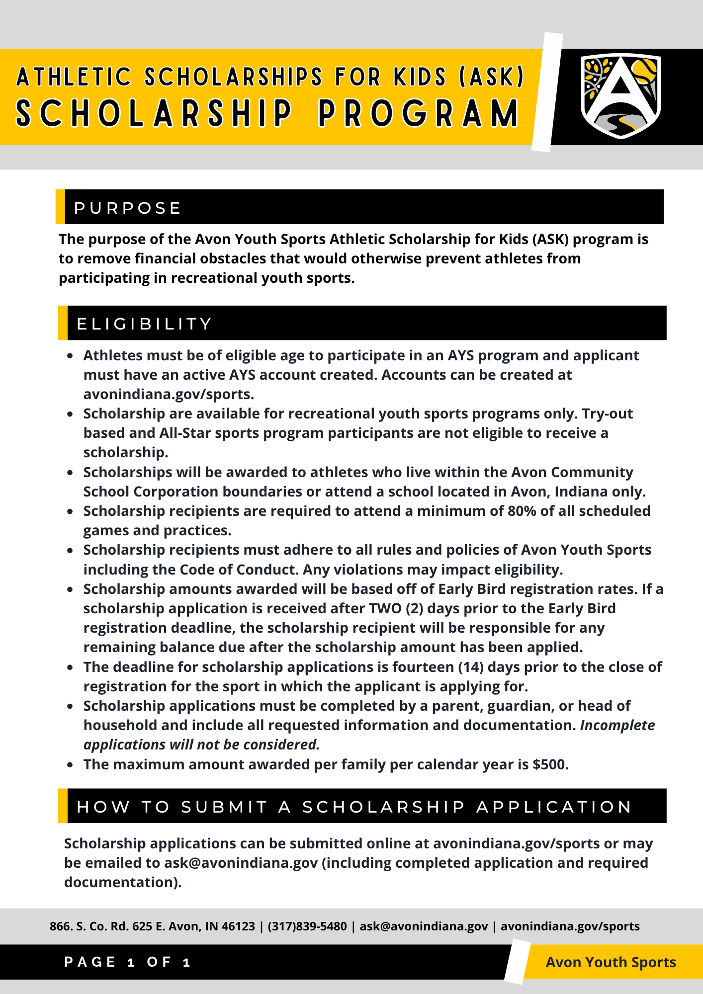 - For Fall Sports, award letters will not be issued until the start of the school year, per the ACSC school system. For Fall scholarship requests, the parent/guardian submitting the scholarship application consents that they, to the best of their knowledge, will receive the same discount from the previous school year.